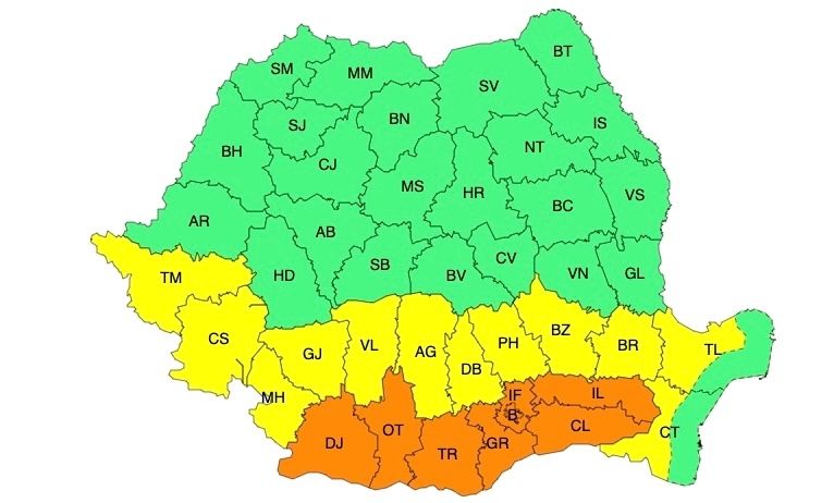 Vremea se menține caniculară, cu temperaturi ce ating chiar 37-38 de grade, însă apar și episoade de furtuni și instabilitate atmosferică. Administrația Națională de Meteorologie a emis noi atenționări de caniculă și ploi violente.