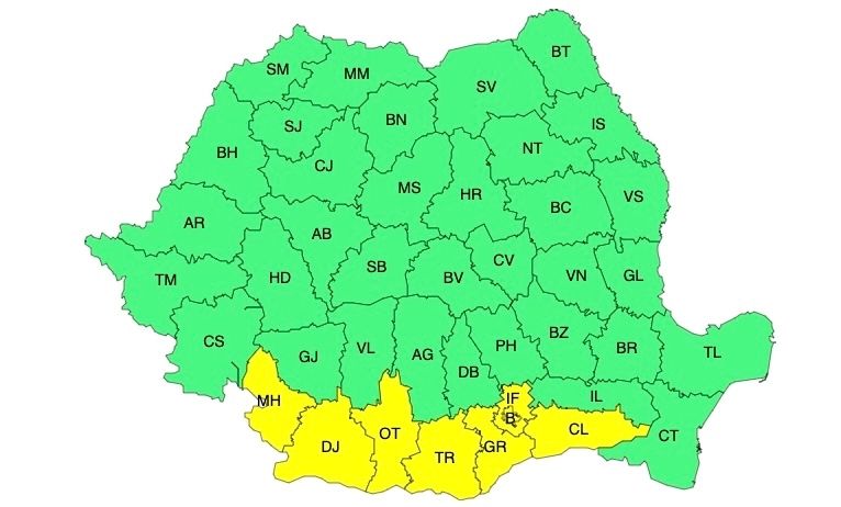 În județele Dolj, Olt, Teleorman, Giurgiu, Ialomița, Călărași și Ilfov, precum și în municipiul București valul de căldură va persista, iar temperaturile maxime, deși ușor mai scăzute față de cele înregistrate în zilele anterioare, vor fi în continuare deosebit de ridicate. Disconfortul termic se va menține accentuat, indicele temperatură- umezeală (ITU) va depăși ușor pragul critic de 80 de unități și va fi caniculă.