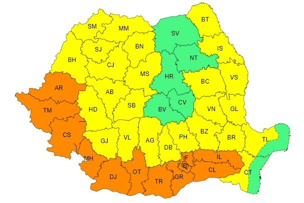 ANM A EMIS DOUĂ CODURI PORTOCALII PENTRU URMĂTOARELE ZILE