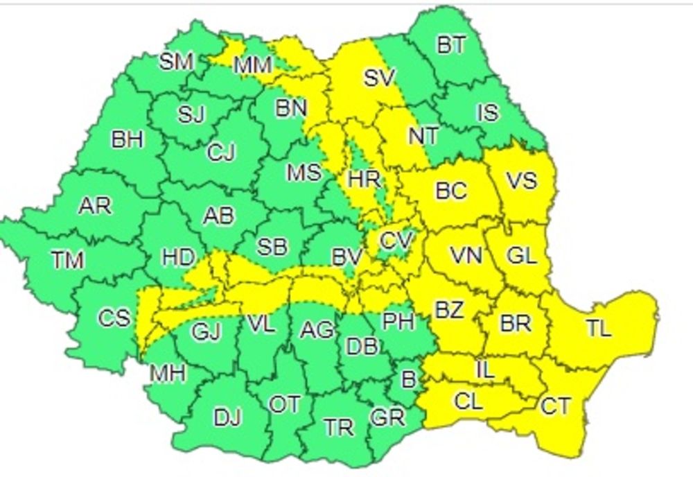 rafalele vor depăși 80…90 km/h. Vor fi perioade cu transport de zăpadă, viscol și vizibilitate redusă.