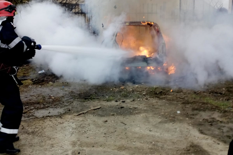 Autoturism, mistuit de flăcări în localitatea Crișeni