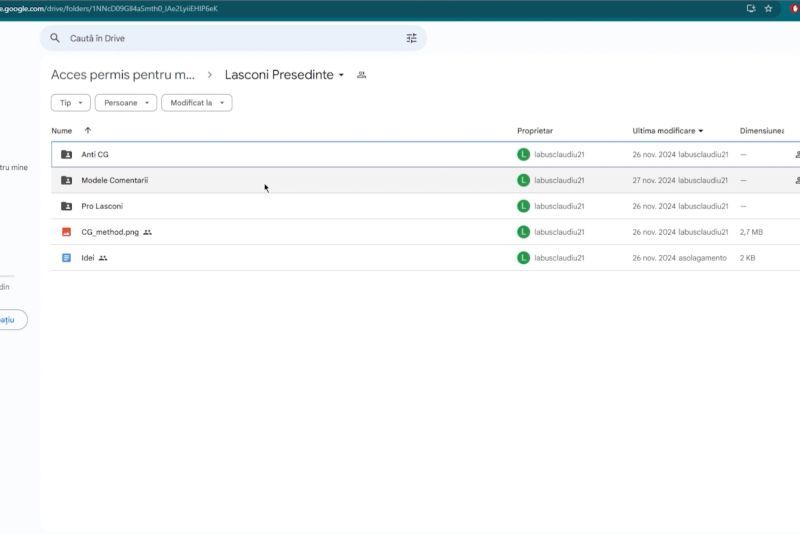 Realitatea a intrat în posesia unui link Google Drive în care sunt centralizate, extrem de minuțios, materiale anti Călin Georgescu. Contul pare folosit de o întreagă echipă pentru că, după cum putem vedea pe coloana “proprietar”, sunt mai mulți utilizatori care pun materiale acolo.