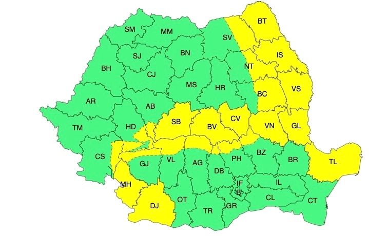 Până în această seară, la ora 22.00, se vor semnala intensificări ale vântului în Moldova, local în Transilvania, Oltenia și Dobrogea, viscol în Carpații Meridionali și de Curbură, îndeosebi la altitudini de peste 1700 m.