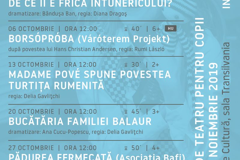 Stagiunea de teatru, cuprinzând spectacole de teatru pentru adulți și copii în limbile română și maghiară, este organizată de teatrul Reactor de creație și experiment din Cluj-Napoca.