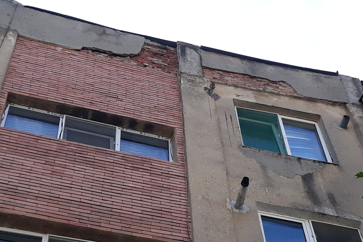 Pericol pe strada Torentului din municipiu. Cad bucăţi de tencuială de pe blocuri