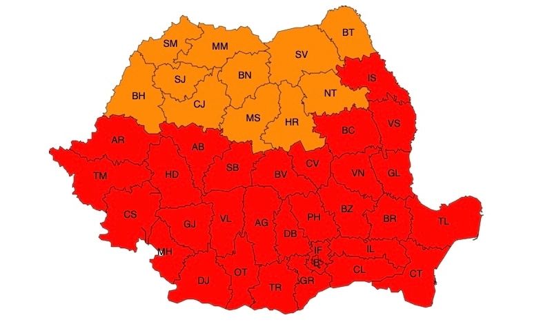 PROGNOZĂ ANM ACTUALIZATĂ: COD ROȘU DE CANICULĂ, COD GALBEN DE FURTUNI EXTREME