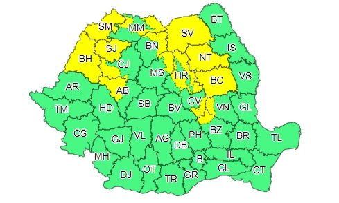 O altă avertizare de cod galben va fi valabilă de azi, 24 noiembrie, ora 18:00 până pe 26 noiembrie, ora 18:00