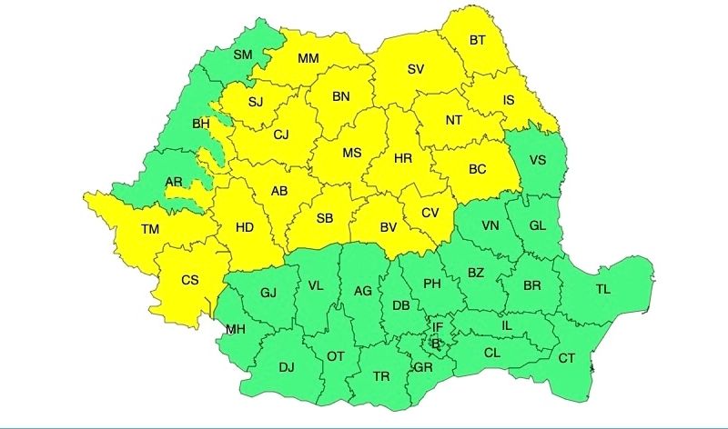 ATENȚIONARE METEOROLOGICĂ - COD GALBEN