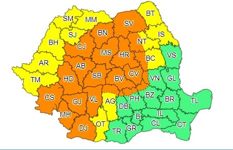 Cod galben și portocaliu de vreme severă, în orele următoare. Care sunt zonele vizate - HARTA
