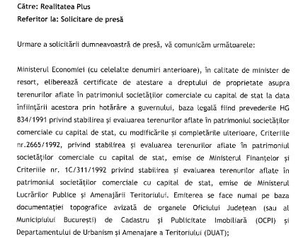 Demersurile pentru desecretizarea contractului de privatizare a OMV Petrom continuă la Realitatea PLUS. Reprezentanții Ministerului Economiei au răspuns solicitărilor și au spus că nu au nicio legătură cu contractul de privatizare Petrom.