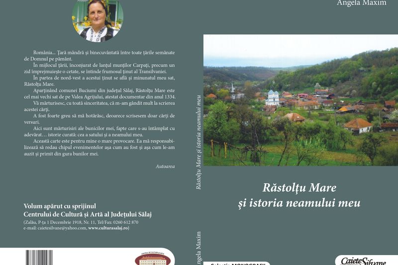 Angela Maxim, ''Răstolțu Mare și istoria neamului meu'', Editura ''Caiete Silvane'', Colecția ''Monografii'' - Zalău - 2019. ''România... Ţară mândră şi binecuvântată între toate ţările semănate de Domnul pe pământ. În mijlocul ţării, înconjurat de lanţul munţilor Carpaţi, precum un zid împrejmuieşte o cetate, se întinde frumosul ţinut al Transilvaniei. În partea de nord‑vest a acestui ţinut se află şi minunatul meu sat, Răstolţu Mare. Aparţinând comunei Buciumi din judeţul Sălaj, Răstolţu Mare este cel mai vechi sat de pe Valea Agrijului, atestat documentar din anul 1334. Vă mărturisesc, cu toată sinceritatea, că m‑am gândit mult la scrierea acestei cărţi. A fost foarte greu să mă hotărăsc, deoarece scrisesem doar cărţi de versuri. Aici sunt mărturisiri ale bunicilor mei, fapte care s‑au întâmplat cu‑adevărat… istorie curată: cea a satului şi a neamului meu. Această carte este pentru mine o mare provocare. Ea mă responsabilizează să redau chipul evenimentelor aşa cum au fost şi aşa cum le‑am auzit şi primit din gura bunilor mei'', scrie în postfaţa volumului autoarea.