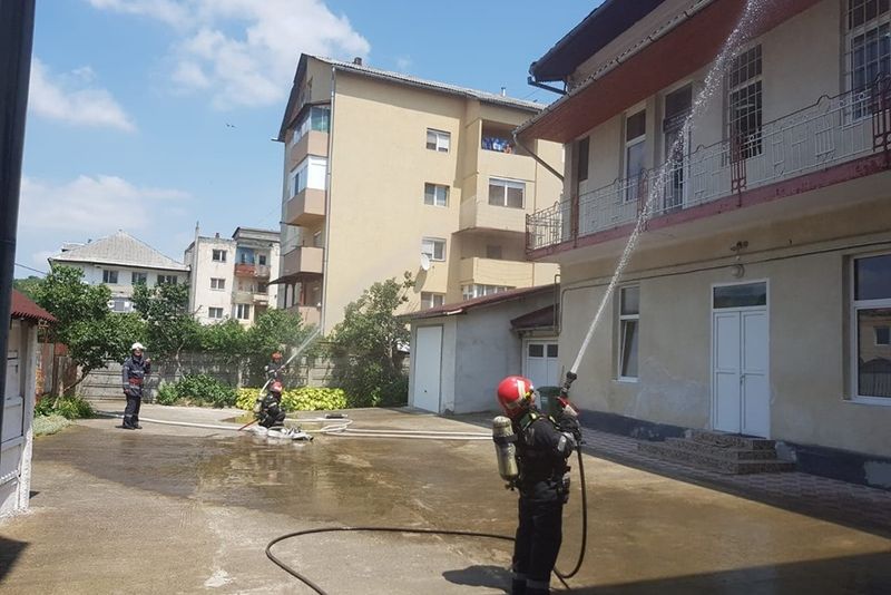 Pompierii au simulat o intervenție la un incendiu. Clubul copiilor Cehu Silvaniei a fost cuprins de flăcări