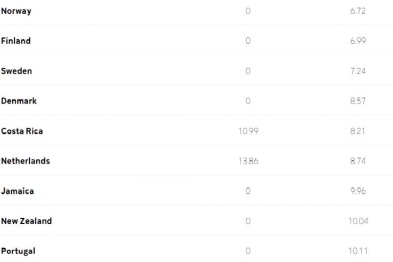 În topul european și desigur mondial, primele locuri sunt ale țărilor nordice: Norvegia, Finlanda, Suedia şi Danemarca. Pe al cincilea loc este Portugalia, potrivit clasamentului făcut de EuroNews.