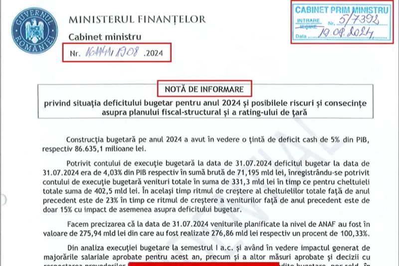 Pe 31 octombrie 2024, poșta militară a Serviciului Român de Informații a preluat un document de la Ministerul Finanțelor adresat către trei dintre cei mai importanți oameni din statul român, după cum arată Europa Liberă.