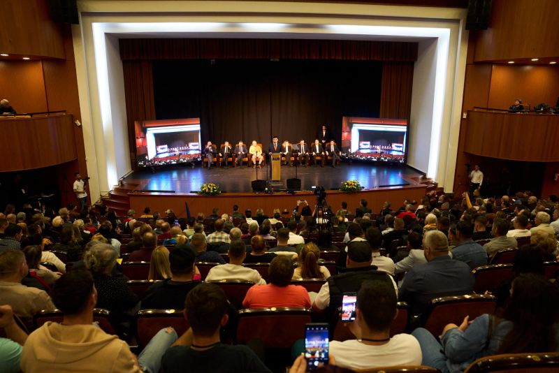 Imagini impresionante la conferința județeană AUR Călărași. George Simion, discurs în fața a sute de călărășeni după ce curentul a fost întrerupt